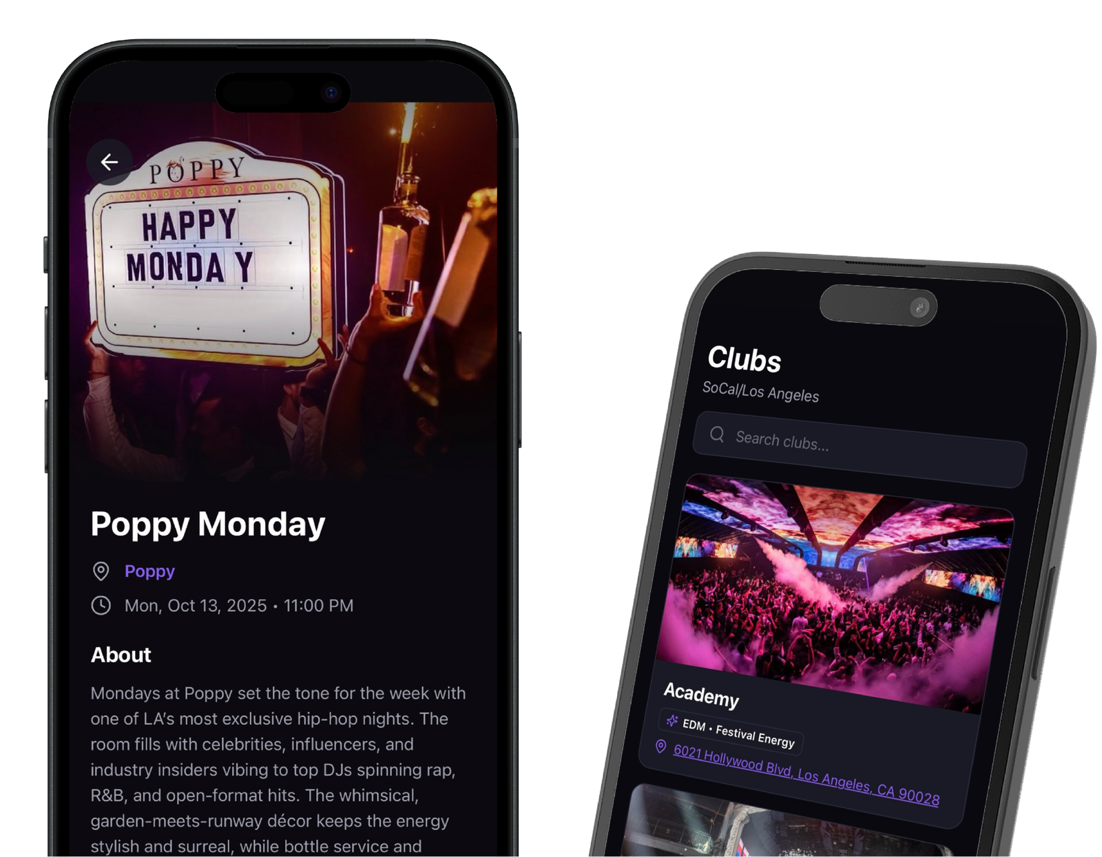 Browse upcoming parties, concerts, and club nights in your city. Find the perfect event that matches your vibe.
